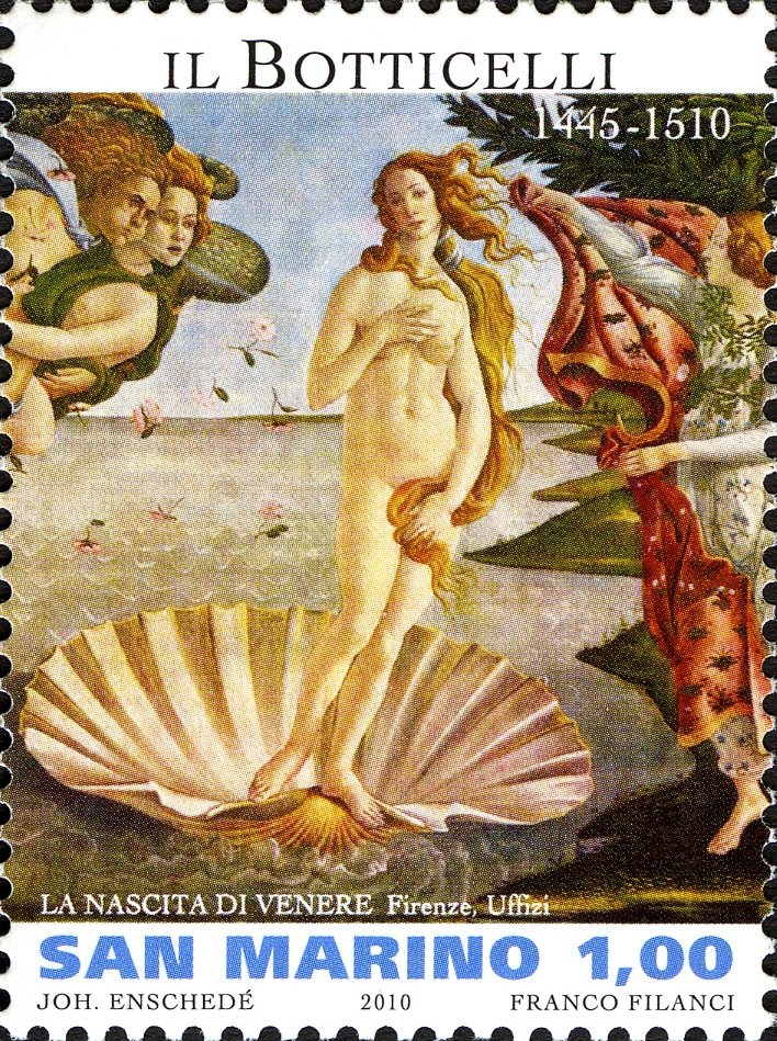Visibility: public Image owner: none postage 7/26/2010 1.00€ multi issue=Art Masters dt=art masters d=Botticelli - The Birth of Venus unwmk Crops No visible images cropped from this one. Measurements Resolution is unknown. Source Source name: Colnect File URL: http://i.colnect.net/b/682/928/Botticelli---The-Birth-of-Venus.jpg Uploaded September 9, 2014, 2:02 pm by Stan Shebs |