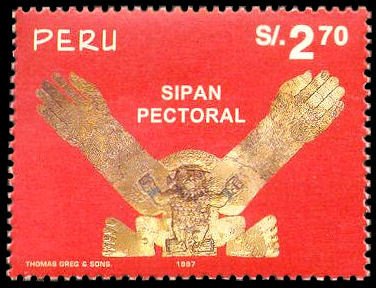Visibility: public Image owner: none postage 9/22/1997 2.70s multi issue=Funerary Chamber of "Senor of Sipan" 1997 unwmk Crops No visible images cropped from this one. Measurements Resolution is unknown. Source Source name: Colnect File URL: http://i.colnect.net/images/b/1672/721/Lord-of-Sipan-artifacts---animal-figure-with-large-hands.jpg Uploaded September 9, 2014, 3:04 pm by Stan Shebs |