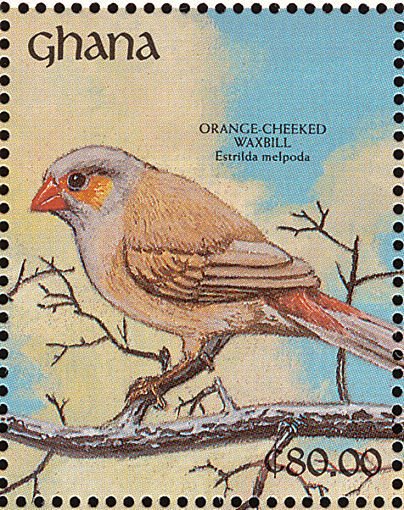 Visibility: public Image owner: none postage 10/14/1991 80c multi issue=The Birds of Ghana d=Orange-cheeked Waxbill Estrilda melpoda unwmk perf=14.25 Crops No visible images cropped from this one. Measurements Resolution is unknown. Source Source name: Colnect File URL: http://i.colnect.net/b/1459/773/Orange-cheeked-Waxbill Estrilda-melpoda.jpg Uploaded September 9, 2014, 4:14 pm by Stan Shebs |