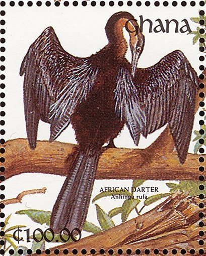 Visibility: public Image owner: none postage 10/14/1991 100c multi issue=The Birds of Ghana d=African Darter Anhinga rufa (1991) unwmk perf=14.25 Crops No visible images cropped from this one. Measurements Resolution is unknown. Source Source name: Colnect File URL: http://i.colnect.net/b/1459/816/African-Darter-Anhinga-rufa.jpg Uploaded September 9, 2014, 4:15 pm by Stan Shebs |