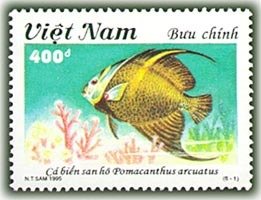 Visibility: public Image owner: none postage 3/20/1995 400d multi dt=fishes (1995 Vietnam) d=Pomacanthus arcuatus (1995) unwmk perf=13 Crops No visible images cropped from this one. Measurements Resolution is unknown. Source Source name: Colnect File URL: http://i.colnect.net/b/1655/147/Gray-Angelfish-Pomacanthus-arcuatus.jpg Uploaded September 9, 2014, 4:59 pm by Stan Shebs |