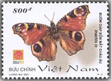 Visibility: public Image owner: none postage 7/16/2001 800d multi issue=Philanippon '01 dt=butterflies (2001 Vietnam) d=Inachis io (2001) unwmk Crops No visible images cropped from this one. Measurements Resolution is unknown. Source Source name: Colnect File URL: http://i.colnect.net/b/1661/198/Peacock-Butterfly-Inachis-io.jpg Uploaded September 9, 2014, 5:28 pm by Stan Shebs |