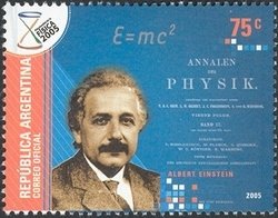 Visibility: public Image owner: none postage 4/23/2005 75c multi issue=International Year of Physics d=Einstein unwmk perf=14 Crops No visible images cropped from this one. Measurements Resolution is unknown. Source Source name: Colnect File URL: http://i.colnect.net/b/1293/887/Albert-Einstein-1879-1955.jpg Uploaded September 9, 2014, 5:58 pm by Stan Shebs |