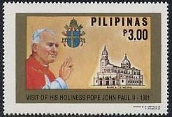 Visibility: public Image owner: none postage 2/17/1981 3.00p multi issue=Papal Visit d=Pope John Paul II (1981) unwmk Crops No visible images cropped from this one. Measurements Resolution is unknown. Source Source name: Colnect File URL: http://i.colnect.net/images/b/1293/652/Pope-giving-blessing-Vatican-arms-Manila-Cathedral.jpg Uploaded September 9, 2014, 6:08 pm by Stan Shebs |