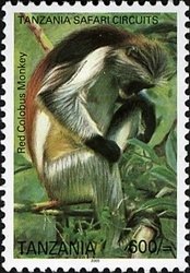 Visibility: public Image owner: none postage 4/30/2005 500sh multi issue=Tanzania Safari Circuits dt=animals of Tanzania (2005) d=Red Colobus Monkey unwmk perf=13 Crops No visible images cropped from this one. Measurements Resolution is unknown. Source Source name: Colnect File URL: http://i.colnect.net/b/1690/433/Western-Red-Colobus-Colobus-badius.jpg Uploaded September 9, 2014, 8:41 pm by Stan Shebs |