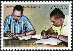 Visibility: public Image owner: none postage 12/9/2005 600sh multi dt=anniversaries & events (2005) d=The late Presidents J.K. Nyere and Abeid Aman Karume signing for Union treaty unwmk perf=14 Crops No visible images cropped from this one. Measurements Resolution is unknown. Source Source name: Colnect File URL: http://i.colnect.net/b/1690/517/The-late-Presidents-JK-Nyere-and-Abeid-Aman-Karume.jpg Uploaded September 9, 2014, 8:42 pm by Stan Shebs |