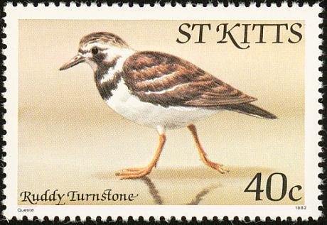 Visibility: public Image owner: none postage 2/5/1981 40c multi issue=1981 dt=birds (1981 St. Kitts) d=ruddy turnstone (1981) wmk=crown & CA spiral Crops No visible images cropped from this one. Measurements Resolution is unknown. Source Source name: Colnect File URL: http://i.colnect.net/images/b/1659/329/Ruddy-Turnstone-nbsp-.jpg Uploaded September 10, 2014, 1:01 pm by Stan Shebs |