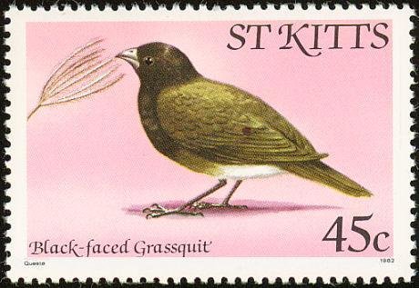 Visibility: public Image owner: none postage 2/5/1981 45c multi issue=1981 dt=birds (1981 St. Kitts) d=black-faced grassquit wmk=crown & CA spiral Crops No visible images cropped from this one. Measurements Resolution is unknown. Source Source name: Colnect File URL: http://i.colnect.net/images/b/1659/330/Black-faced-Grassquit.jpg Uploaded September 10, 2014, 1:01 pm by Stan Shebs |
