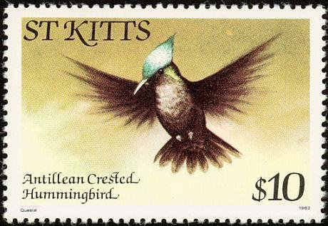 Visibility: public Image owner: none postage 2/5/1981 $10 multi issue=1981 dt=birds (1981 St. Kitts) d=Antillean Crested Hummingbird (1981) wmk=crown & CA spiral Crops No visible images cropped from this one. Measurements Resolution is unknown. Source Source name: Colnect File URL: http://i.colnect.net/b/1659/336/Antillean-Crested-Hummingbird-Orthorhyncus-cristatus.jpg Uploaded September 10, 2014, 1:01 pm by Stan Shebs |