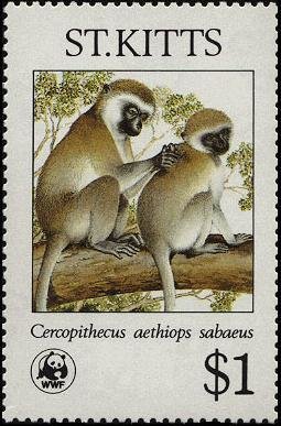 Visibility: public Image owner: none postage 12/1/1986 $1 multi dt=Green Monkeys on St. Kitts d=Cercopithecus aethiops sabaeus wmk=crown & script CA spiral perf=14x13.75 Crops No visible images cropped from this one. Measurements Resolution is unknown. Source Source name: Colnect File URL: http://i.colnect.net/b/1659/379/Adult-grooming-young-monkey.jpg Uploaded September 10, 2014, 1:02 pm by Stan Shebs |