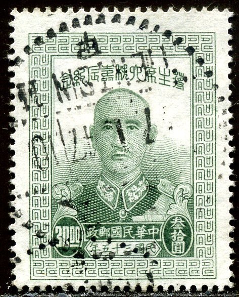 Visibility: public Image owner: none postage 10/31/1946 $30 issue=Chiang Kai-shek 60th d=Chiang Kai-shek unwmk Crops No visible images cropped from this one. Measurements Resolution is unknown. Source Source name: Colnect File URL: http://i.colnect.net/b/1579/056/Chiang-Kai-shek-1887-1975-president.jpg Uploaded September 10, 2014, 1:05 pm by Stan Shebs |