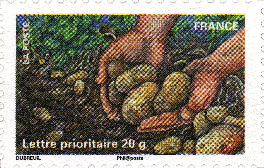 Visibility: public Image owner: none postage 2/28/2011 Lettre prioritaire 20g multi issue=Stamp Day 2011 unwmk Crops No visible images cropped from this one. Measurements Resolution is unknown. Source Source name: Colnect File URL: http://i.colnect.net/b/721/238/Hands-with-Potatoes.jpg Uploaded September 10, 2014, 2:19 pm by Stan Shebs |