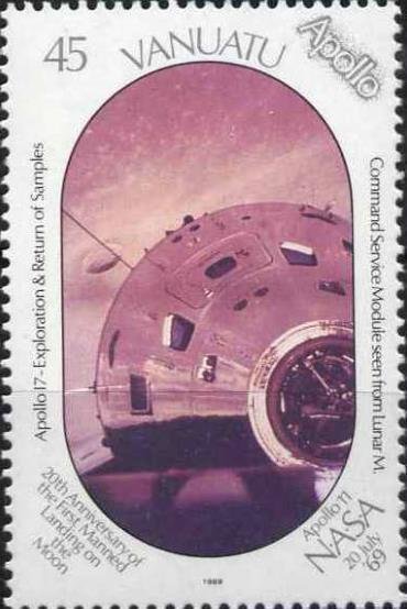 Visibility: public Image owner: none postage 7/20/1989 45v multi issue=20th Anniversary of the first Manned Moon Landing d=Space Capsule Apollo 17 wmk=crown & script CA spiral Crops No visible images cropped from this one. Measurements Resolution is unknown. Source Source name: Colnect File URL: http://i.colnect.net/b/1232/235/Space-Capsule-Apollo-17.jpg Uploaded September 10, 2014, 2:54 pm by Stan Shebs |