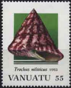 Visibility: public Image owner: none postage 9/15/1993 55vt multi dt=shells (1993 Vanuatu) d=Trochus niloticus (1993) wmk=crown & CA spiral perf=14.25 Crops No visible images cropped from this one. Measurements Resolution is unknown. Source Source name: Colnect File URL: http://i.colnect.net/b/1237/663/Commercial-Top-Shell-Tectus-niloticus.jpg Uploaded September 10, 2014, 2:55 pm by Stan Shebs |