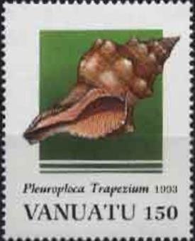 Visibility: public Image owner: none postage 9/15/1993 150vt multi dt=shells (1993 Vanuatu) d=Pleuroplocsa trapezium wmk=crown & CA spiral perf=14.25 Crops No visible images cropped from this one. Measurements Resolution is unknown. Source Source name: Colnect File URL: http://i.colnect.net/b/1237/666/Trapezium-Horse-Conch-Fasciolaria-trapezium.jpg Uploaded September 10, 2014, 2:55 pm by Stan Shebs |