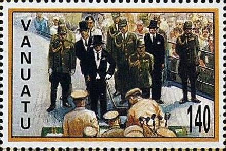 Visibility: public Image owner: none postage 9/1/1995 140vt multi issue=50th Anniversary of the End of the Pacific War unwmk Crops No visible images cropped from this one. Measurements Resolution is unknown. Source Source name: Colnect File URL: http://i.colnect.net/b/1239/723/Signing-of-the-Japanese-Surrender-on-the-American-Battleship.jpg Uploaded September 10, 2014, 2:56 pm by Stan Shebs |
