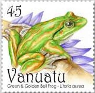Visibility: public Image owner: none postage 7/27/2011 45vt multi dt=frogs (2011 Vanuatu) d=Litoria aurea unwmk perf=14.25 Crops No visible images cropped from this one. Measurements Resolution is unknown. Source Source name: Colnect File URL: http://i.colnect.net/b/1256/368/Golden-Bell-Frog-Litoria-aurea.jpg Uploaded September 10, 2014, 4:07 pm by Stan Shebs |