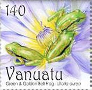 Visibility: public Image owner: none postage 7/27/2011 140vt multi dt=frogs (2011 Vanuatu) d=Litoria aurea unwmk Crops No visible images cropped from this one. Measurements Resolution is unknown. Source Source name: Colnect File URL: http://i.colnect.net/b/1256/370/Golden-Bell-Frog-Litoria-aurea.jpg Uploaded September 10, 2014, 4:07 pm by Stan Shebs |