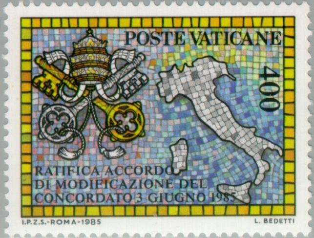 Visibility: public Image owner: none postage 10/15/1985 400(l) multi issue=Change in the Treaty with Italy unwmk perf=14x13.25 Crops No visible images cropped from this one. Measurements Resolution is unknown. Source Source name: Colnect File URL: http://i.colnect.net/b/151/381/Italy-and-the-Papal-coat-of-arms.jpg Uploaded August 14, 2013, 10:54 pm by Stan Shebs |