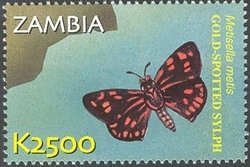 Visibility: public Image owner: none postage 9/9/2002 2500k multi dt=flora & fauna of Zambia d=Metisella metis unwmk Crops No visible images cropped from this one. Measurements Resolution is unknown. Source Source name: Colnect File URL: http://i.colnect.net/b/934/603/Gold-Spotted-Sylph-Metisella-metis.jpg Uploaded January 25, 2014, 4:42 pm by Stan Shebs |