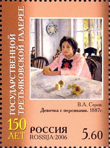 Visibility: public Image owner: none postage 4/26/2006 5.60r multi issue=150th Anniversary of the State Tretjakov Gallery d="A Girl with Peaches" by V.A. Serov unwmk Crops No visible images cropped from this one. Measurements Resolution is unknown. Source Source name: Colnect File URL: http://i.colnect.net/b/1025/301/“A-girl-with-peaches”-by-VASerov.jpg Uploaded September 10, 2014, 5:48 pm by Stan Shebs |