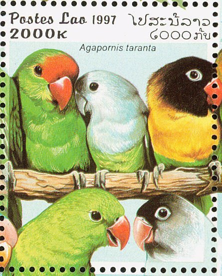 Visibility: public Image owner: none postage 3/4/1997 2000k multi dt=Lovebirds d=Agapornis taranta, Agapornis canus, Agap… unwmk Crops No visible images cropped from this one. Measurements Resolution is unknown. Source Source name: Colnect File URL: http://i.colnect.net/b/1614/695/Different-Lovebirds-Agapornis-sp.jpg Uploaded September 10, 2014, 6:28 pm by Stan Shebs |