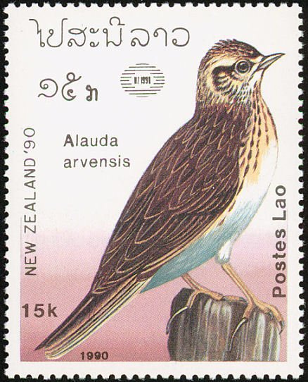 Visibility: public Image owner: none postage 8/24/1990 15k multi issue=New Zealand 1990 dt=New Zealand birds d=Alauda arvensis (1990) unwmk Crops No visible images cropped from this one. Measurements Resolution is unknown. Source Source name: Colnect File URL: http://i.colnect.net/images/b/1614/675/Eurasian-Skylark-Alauda-arvensis.jpg Uploaded September 10, 2014, 6:30 pm by Stan Shebs |