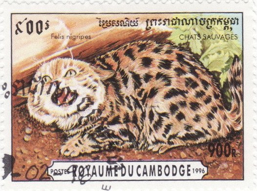 Visibility: public Image owner: none postage 2/8/1996 900r multi dt=Wild Cats (1996) d=Felis nigripes (1996 Cambodia) unwmk Crops No visible images cropped from this one. Measurements Resolution is unknown. Source Source name: Colnect File URL: http://i.colnect.net/b/1106/921/Black-footed-Cat-Felis-nigripes.jpg Uploaded September 10, 2014, 7:08 pm by Stan Shebs |
