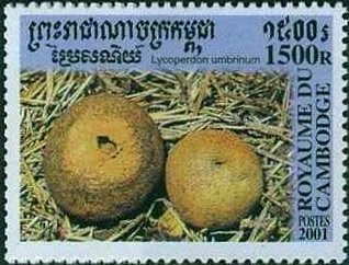 Visibility: public Image owner: none postage 2/25/2001 1500r multi dt=Fungi (2001 Cambodia) d=Lycoperdon umbrinum unwmk Crops No visible images cropped from this one. Measurements Resolution is unknown. Source Source name: Colnect File URL: http://i.colnect.net/images/b/733/325/Lycoperdon-Umbrinum.jpg Uploaded September 10, 2014, 7:29 pm by Stan Shebs |
