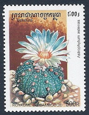 Visibility: public Image owner: none postage 9/15/2001 500r multi dt=cacti (2001 Cambodia) d=ASTROPHYTUM ASTERIAS unwmk Crops No visible images cropped from this one. Measurements Resolution is unknown. Source Source name: Colnect File URL: http://i.colnect.net/images/b/1097/021/Astrophytum-Asterias.jpg Uploaded September 10, 2014, 7:29 pm by Stan Shebs |