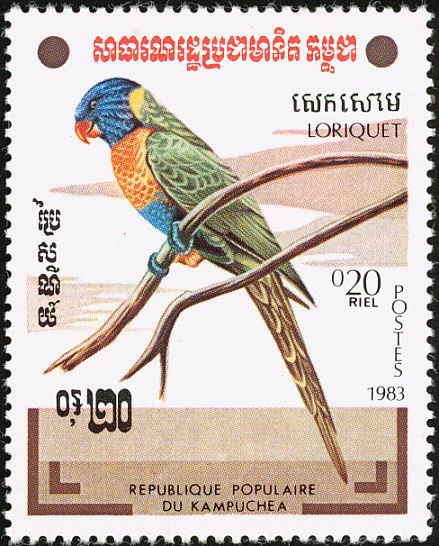 Visibility: public Image owner: none postage 9/20/1983 0.20r multi dt=birds (1983 Cambodia) d=coconut lorikeet unwmk Crops No visible images cropped from this one. Measurements Resolution is unknown. Source Source name: Colnect File URL: http://i.colnect.net/b/1526/965/Ornate-Lorikeet-Trichoglossus-ornatus-.jpg Uploaded September 10, 2014, 7:30 pm by Stan Shebs |