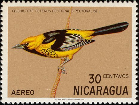 Visibility: public Image owner: none airmail 10/15/1971 30c multi dt=birds (1971 Nicaragua) d=Icterus pectoralis unwmk perf=14 Crops No visible images cropped from this one. Measurements Resolution is unknown. Source Source name: Colnect File URL: http://i.colnect.net/images/b/1625/993/Spot-breasted-Oriole-Icterus-pectoralis.jpg Uploaded September 10, 2014, 8:57 pm by Stan Shebs |