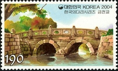 Visibility: public Image owner: none postage 9/24/2004 190w multi dt=Korean bridges (2004) d=Geumcheongyo Bridge unwmk Crops No visible images cropped from this one. Measurements Resolution is unknown. Source Source name: Colnect File URL: http://i.colnect.net/b/1605/254/Geumcheongyo-Bridge.jpg Uploaded September 10, 2014, 9:12 pm by Stan Shebs |