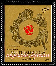 Visibility: public Image owner: none postage 5/12/1997 3.40p multi issue=100th Anniversary of Japanese Immigration d=Mexican Mythological Figures - Luis Nish wmk=MEX & eagle Crops No visible images cropped from this one. Measurements Resolution is unknown. Source Source name: Colnect File URL: http://i.colnect.net/b/310/013/Centenary-of-the-First-Japanese-migration-to-Mexico-Joint-I.jpg Uploaded September 10, 2014, 9:18 pm by Stan Shebs |