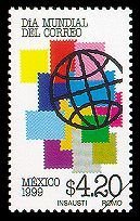 Visibility: public Image owner: none postage 10/9/1999 4.20p multi issue=World Post Day 1999 wmk=MEX & eagle Crops No visible images cropped from this one. Measurements Resolution is unknown. Source Source name: Colnect File URL: http://i.colnect.net/images/b/313/000/World-Post-Day.jpg Uploaded September 10, 2014, 9:34 pm by Stan Shebs |