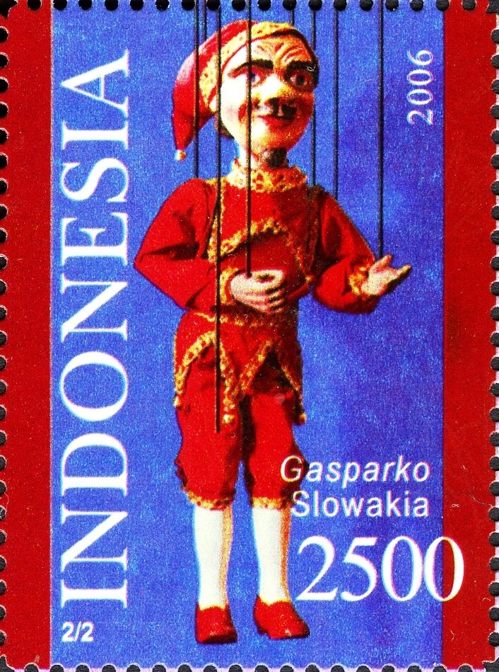 Visibility: public Image owner: none postage 9/27/2006 2500r multi issue=Indonesia-Slovakia Joint Issue dt=puppets (2006) d=Gasparko unwmk perf=12.5 Crops No visible images cropped from this one. Measurements Resolution is unknown. Source Source name: Colnect File URL: http://i.colnect.net/b/1586/798/Games---Toys-Puppets.jpg Uploaded September 10, 2014, 11:05 pm by Stan Shebs |