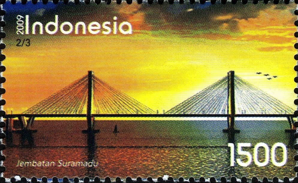 Visibility: public Image owner: none postage 6/10/2009 1500r multi issue=Inauguration of Suramadu Bridge unwmk perf=12.75x13.5 Crops No visible images cropped from this one. Measurements Resolution is unknown. Source Source name: Colnect File URL: http://i.colnect.net/b/1587/505/Engineering-Bridges .jpg Uploaded September 10, 2014, 11:14 pm by Stan Shebs |