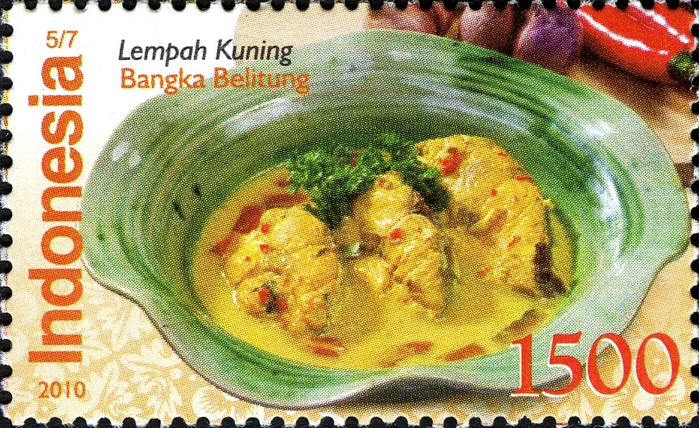 Visibility: public Image owner: none postage 7/6/2010 1500r multi issue=Indonesian Traditional Foods dt=Indonesian traditional foods d=Lempah Kuning unwmk Crops No visible images cropped from this one. Measurements Resolution is unknown. Source Source name: Colnect File URL: http://i.colnect.net/b/1565/301/Lempah-Kuning.jpg Uploaded September 10, 2014, 11:15 pm by Stan Shebs |