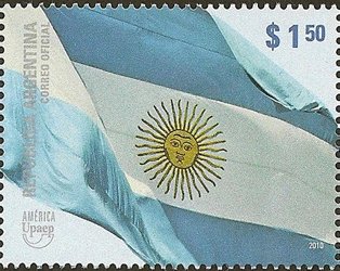 Visibility: public Image owner: none postage 3/27/2010 1.50p multi issue=America UPAEP 2010 d=Argentina’s National Flag unwmk perf=14 Crops No visible images cropped from this one. Measurements Resolution is unknown. Source Source name: Colnect File URL: http://i.colnect.net/b/664/486/Argentina’s-National-Flag.jpg Uploaded September 10, 2014, 11:32 pm by Stan Shebs |