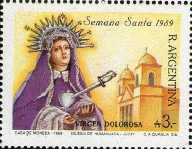 Visibility: public Image owner: none postage 4/22/1989 3a multi issue=Holy Week 1989 unwmk perf=13.5 Crops No visible images cropped from this one. Measurements Resolution is unknown. Source Source name: Colnect File URL: http://i.colnect.net/b/1635/833/Painful-Maria---Church-of-Humahuaca-Jujuy.jpg Uploaded September 10, 2014, 11:52 pm by Stan Shebs |