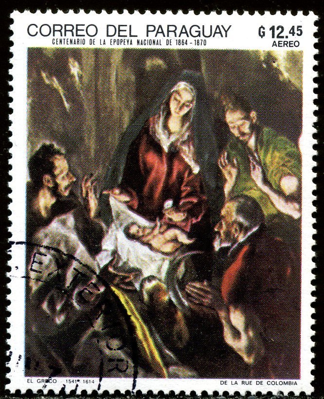 Visibility: public Image owner: none postage 11/29/1969 12.45g multi dt=paintings of Goya unwmk Crops No visible images cropped from this one. Measurements Resolution is unknown. Source Source name: Colnect File URL: http://i.colnect.net/b/1442/911/Adoration-of-the-child-by-El-Greco.jpg Uploaded September 11, 2014, 5:12 pm by Stan Shebs |