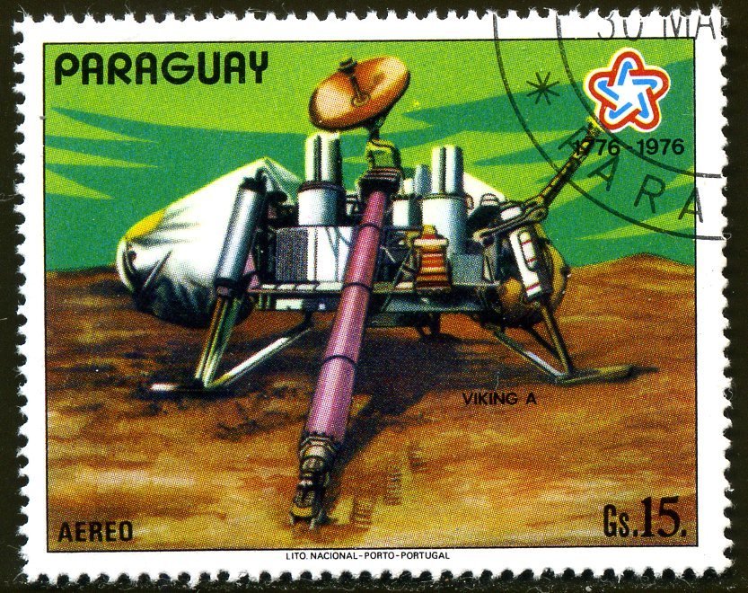 Visibility: public Image owner: none postage 3/3/1977 15g multi issue=200th Anniversary of the Independence of the United States g d=Viking Probe A unwmk perf=14.25 Crops No visible images cropped from this one. Measurements Resolution is unknown. Source Source name: Colnect File URL: http://i.colnect.net/b/1443/564/Viking-spacecraft--A--on-Mars.jpg Uploaded September 11, 2014, 5:17 pm by Stan Shebs |