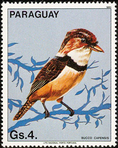 Visibility: public Image owner: none postage 10/22/1983 4g multi dt=birds (1983 Paraguay) d=Bucco capensis (1983) unwmk perf=14 Crops No visible images cropped from this one. Measurements Resolution is unknown. Source Source name: Colnect File URL: http://i.colnect.net/b/1724/421/Collared-Puffbird Bucco-capensis.jpg Uploaded September 11, 2014, 5:18 pm by Stan Shebs |