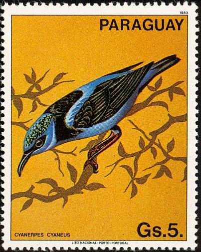 Visibility: public Image owner: none postage 10/22/1983 5g multi dt=birds (1983 Paraguay) d=Cyanerpes cyaneus (1983) unwmk perf=14 Crops No visible images cropped from this one. Measurements Resolution is unknown. Source Source name: Colnect File URL: http://i.colnect.net/b/1724/422/Red-legged-Honeycreeper-Cyanerpes-cyaneus.jpg Uploaded September 11, 2014, 5:18 pm by Stan Shebs |