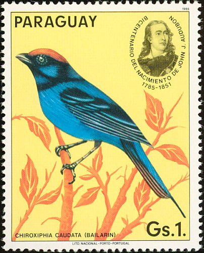 Visibility: public Image owner: none postage 4/18/1985 1g multi issue=200th Anniversary of the Birth of John James Audubon d=Chiroxiphia caudata (1985) unwmk perf=14 Crops No visible images cropped from this one. Measurements Resolution is unknown. Source Source name: Colnect File URL: http://i.colnect.net/b/1724/425/Blue-Manakin Chiroxiphia-caudata.jpg Uploaded September 11, 2014, 5:18 pm by Stan Shebs |