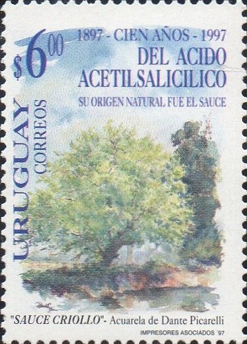 Visibility: public Image owner: none postage 8/12/1997 6.00p multi issue=100th Anniversary of the Discovery of Acetylsalycylic Acid by Dr. Felix Hoffman unwmk Crops No visible images cropped from this one. Measurements Resolution is unknown. Source Source name: Colnect File URL: http://i.colnect.net/b/1191/024/Willow-Tree--Sauce-criollo-.jpg Uploaded September 11, 2014, 5:24 pm by Stan Shebs |