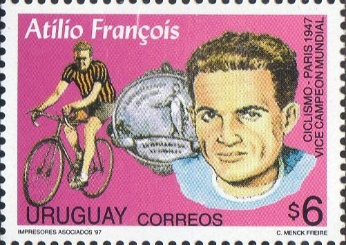 Visibility: public Image owner: none postage 11/26/1997 6p multi dt=Sportsmen d=Atilio Francois unwmk Crops No visible images cropped from this one. Measurements Resolution is unknown. Source Source name: Colnect File URL: http://i.colnect.net/b/1191/045/Atilio-Francois-cyclist.jpg Uploaded September 11, 2014, 5:25 pm by Stan Shebs |