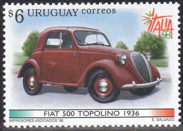 Visibility: public Image owner: none postage 10/23/1998 6p multi issue=Italia 98 dt=motor vehicles d=FIAT "500" Topolino, 1936 unwmk Crops No visible images cropped from this one. Measurements Resolution is unknown. Source Source name: Colnect File URL: http://i.colnect.net/b/1233/362/Fiat-500--topolino--year-1936.jpg Uploaded September 11, 2014, 5:26 pm by Stan Shebs |
