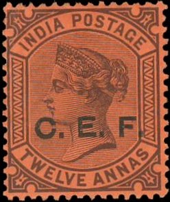 Visibility: public Image owner: none military 12a vio pc=red ovpt=C.E.F. oc=blk on=12a-vio-pc=red Crops No visible images cropped from this one. Measurements Resolution is unknown. Source Source name: Colnect File URL: http://i.colnect.net/b/1574/163/Queen-Victoria---Overprint--CEF-.jpg Uploaded September 11, 2014, 5:42 pm by Stan Shebs |