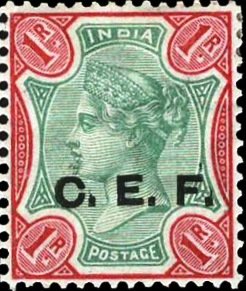 Visibility: public Image owner: none military 1r carrose&grn d=Queen Victoria (1892 India 1r) ovpt=C.E.F. oc=blk on=1r-carrose&grn wmk=star Crops No visible images cropped from this one. Measurements Resolution is unknown. Source Source name: Colnect File URL: http://i.colnect.net/b/1574/164/Queen-Victoria---Overprint--CEF-.jpg Uploaded September 11, 2014, 5:42 pm by Stan Shebs |